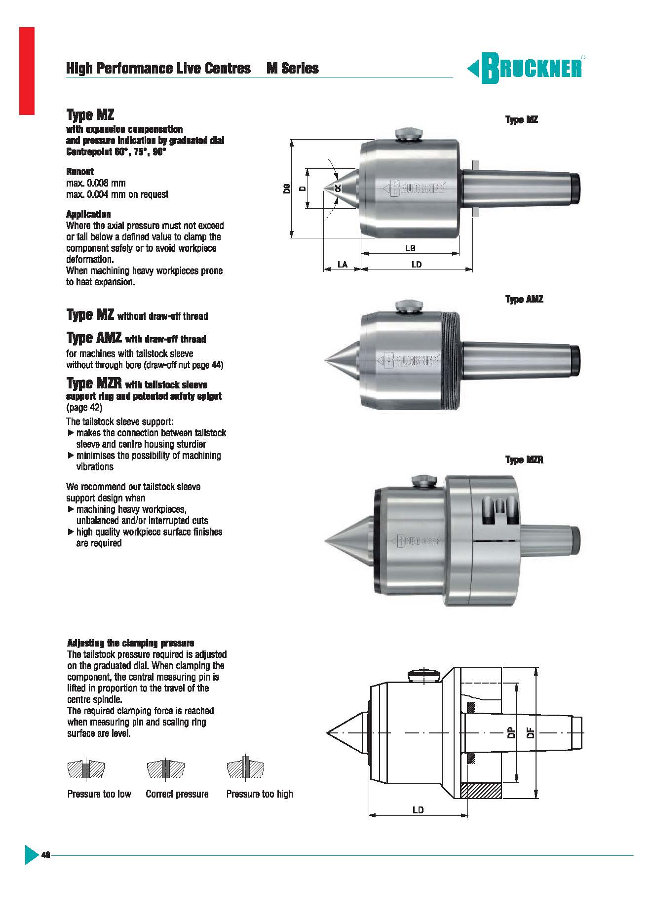 活頂尖在重載刀具受力系統(tǒng)中起著重要作用,在最后的加工效果中起著決定性的角色,Bruckner的設(shè)計(jì)尤其適用于高要求的重載加工。很大的允許負(fù)載依據(jù)錐度直徑尺寸。
